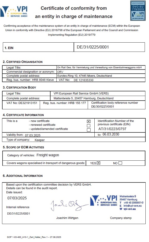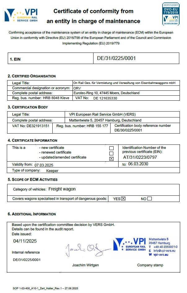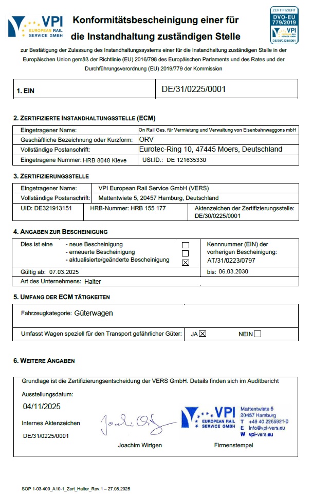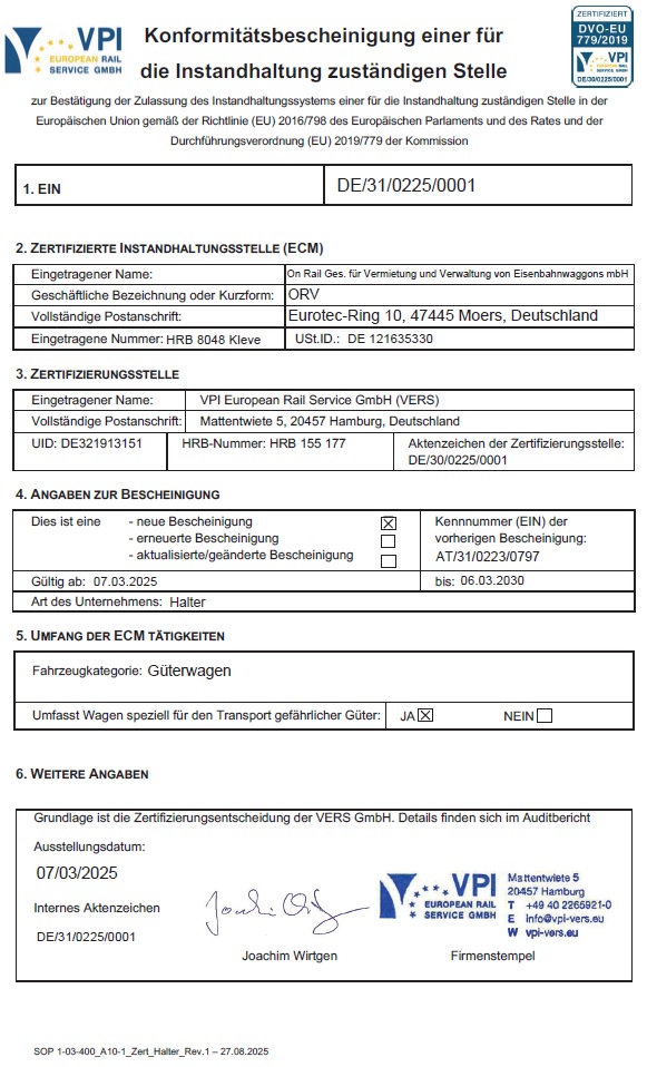 Zusätzlich sind wir gemäß Durchführungsverordnung (EU) 2019/779 ECM-zertifiziert.